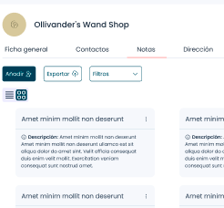 Podrás tener notas para cada cliente la cantidad que quieras, también podrás tener ítems para los clientes, por ejemplo para guardar la maquinaria que tiene por numero de serie y tener controlado en todo momento donde esta esa maquinaria.